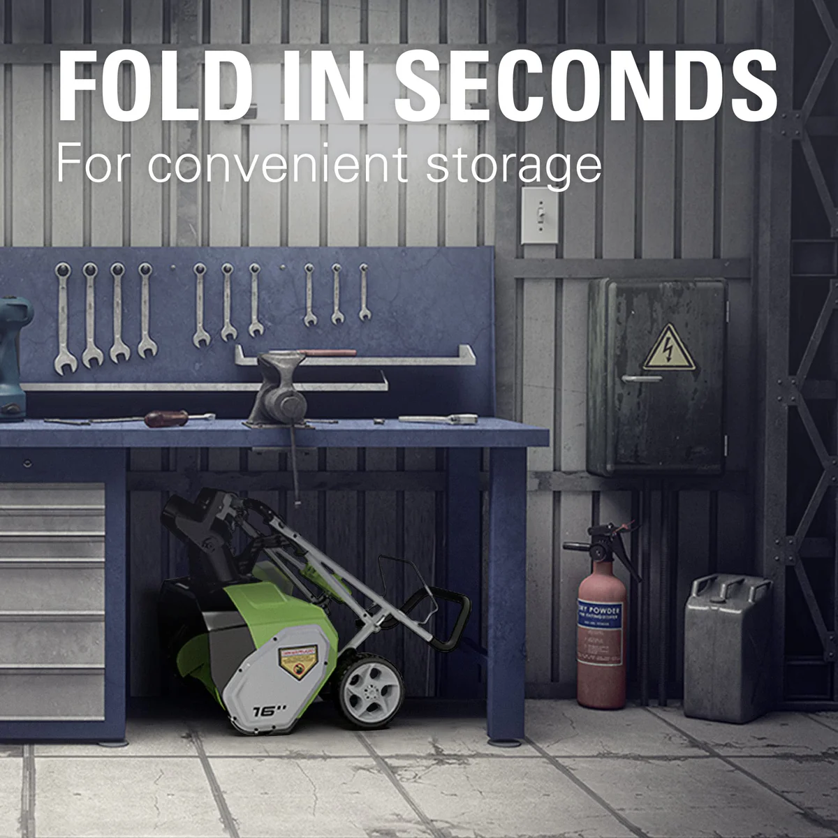 - 40V 16″ Cordless Snow Blower