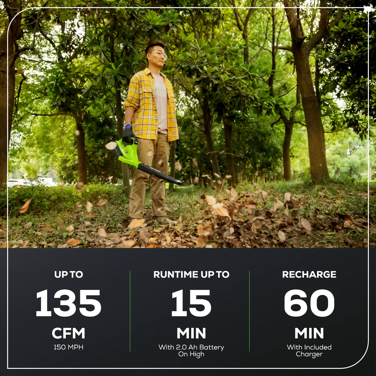 - 💨 Powerful Performance – Delivers up to 135 CFM airflow and 150 MPH wind speed