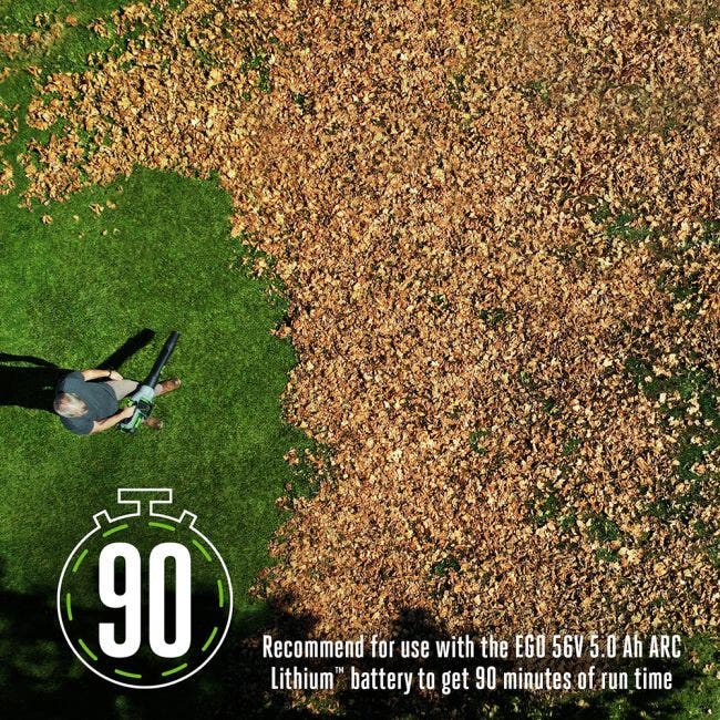 - Up to 90 minutes on a single charge using the included 5.0Ah 56V ARC Lithium™ battery.